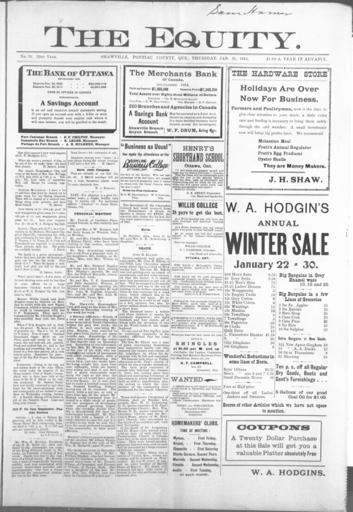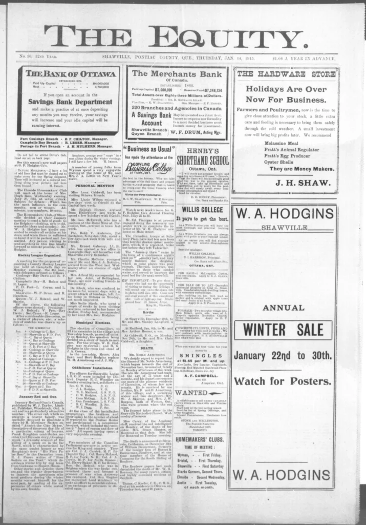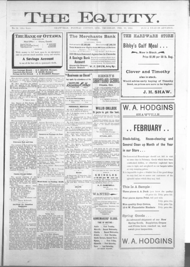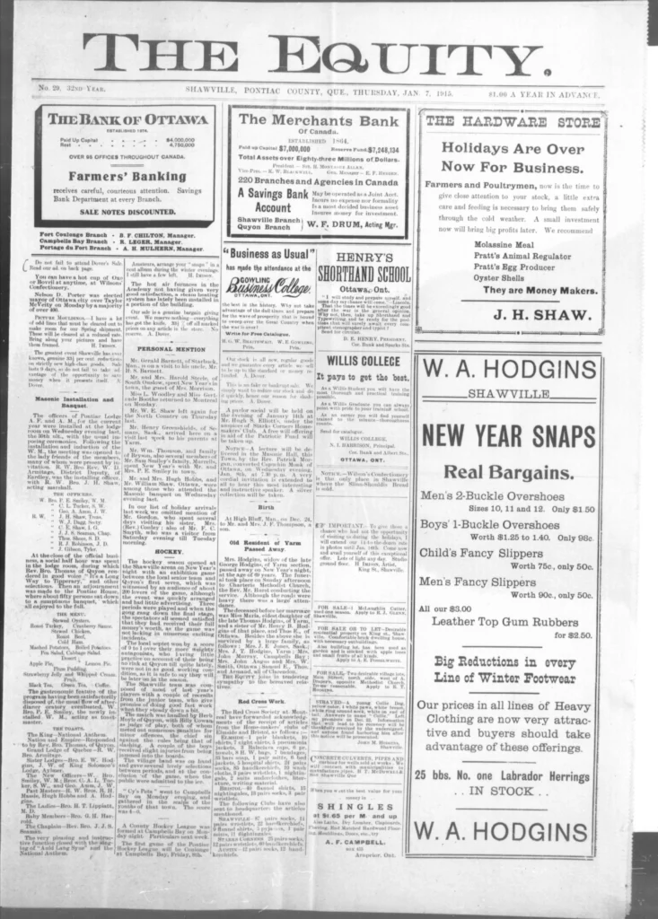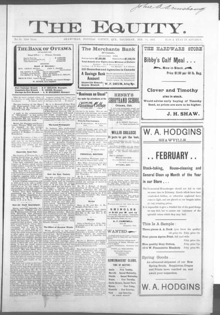 Men kept leaving. The recruiting notices still went up, and familiar names kept appearing on new lists — some from Shawville, some from as far as Campbell’s Bay. The Third Contingent was forming now, and the talk in shops and post offices turned to who would go next, who had written home, and who hadn’t. It wasn’t all battlefield glory anymore. One story in The Equity told of a young man, John Allan Valliant, killed not in France but here in Pembroke Township when his brother’s rifle went off by accident. The shock of it drove home a simple truth: danger wasn’t only “over there.”